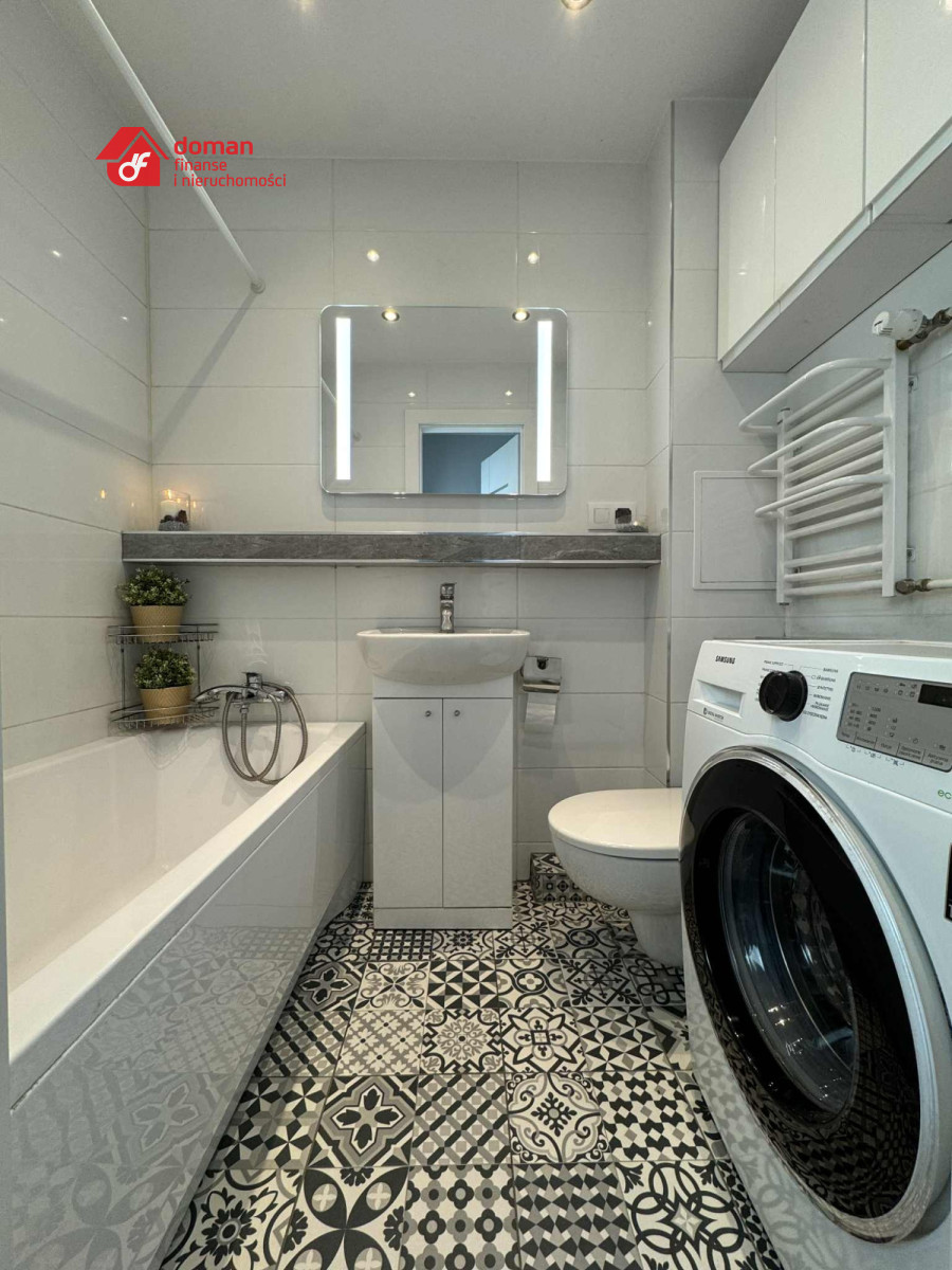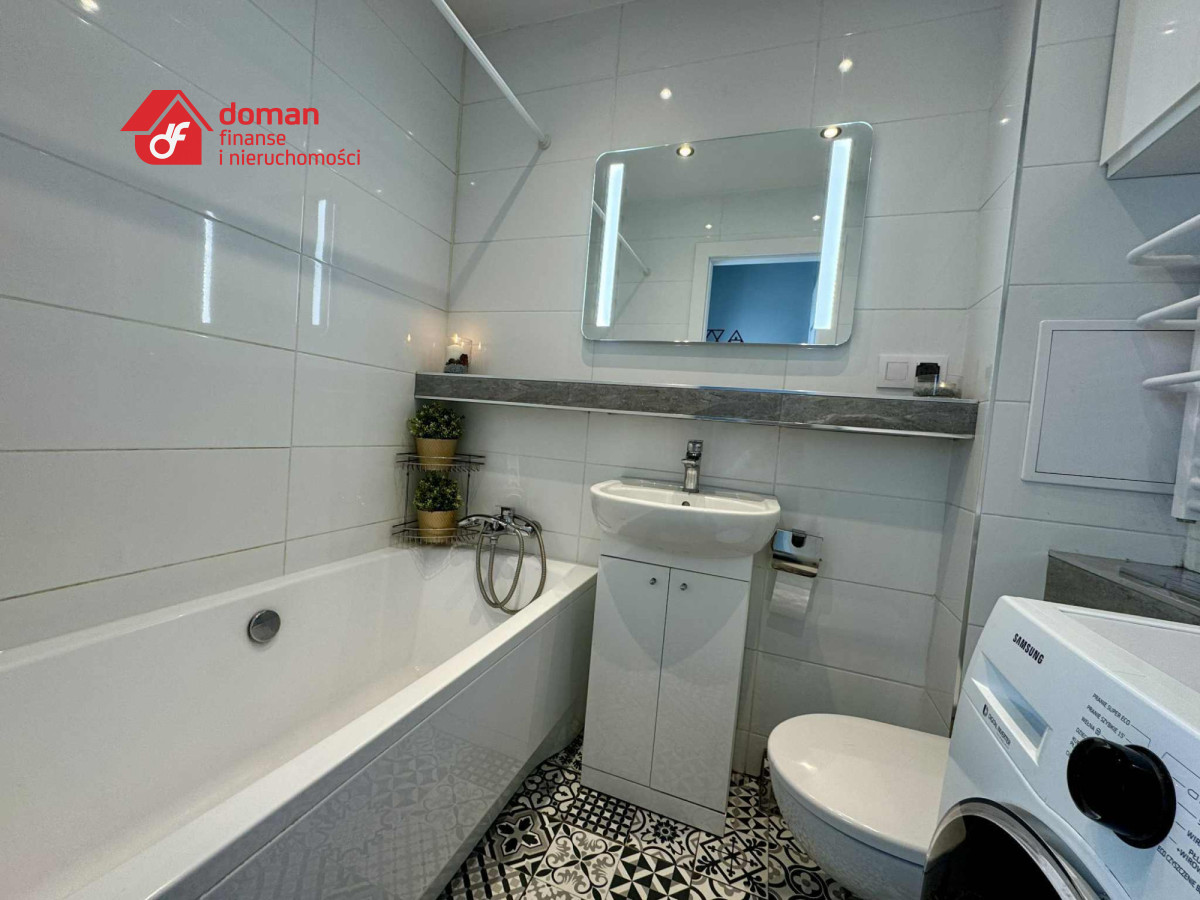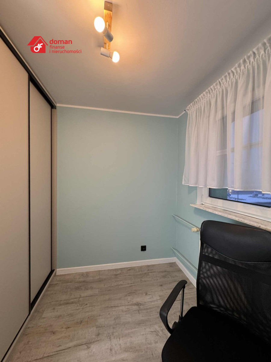 W przedpokoju znajduje się szafa i siedzisko, dodatkowo szafa w biurze, dwie szafy w sypialni oraz zabudowa łazienkowa, co zapewnia maksymalne wykorzystanie przestrzeni i dużą ilość miejsca do przechowywania.