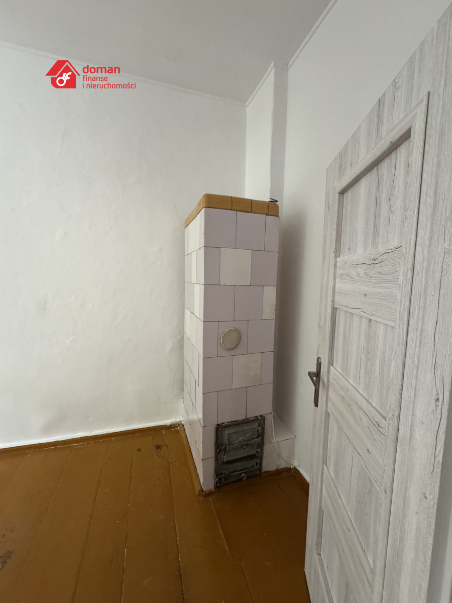 Oryginalne elementy: Na podłogach zachowane deski w dobrym stanie, a w jednym z pokoi znajduje się sprawny, klimatyczny piec kaflowy.
