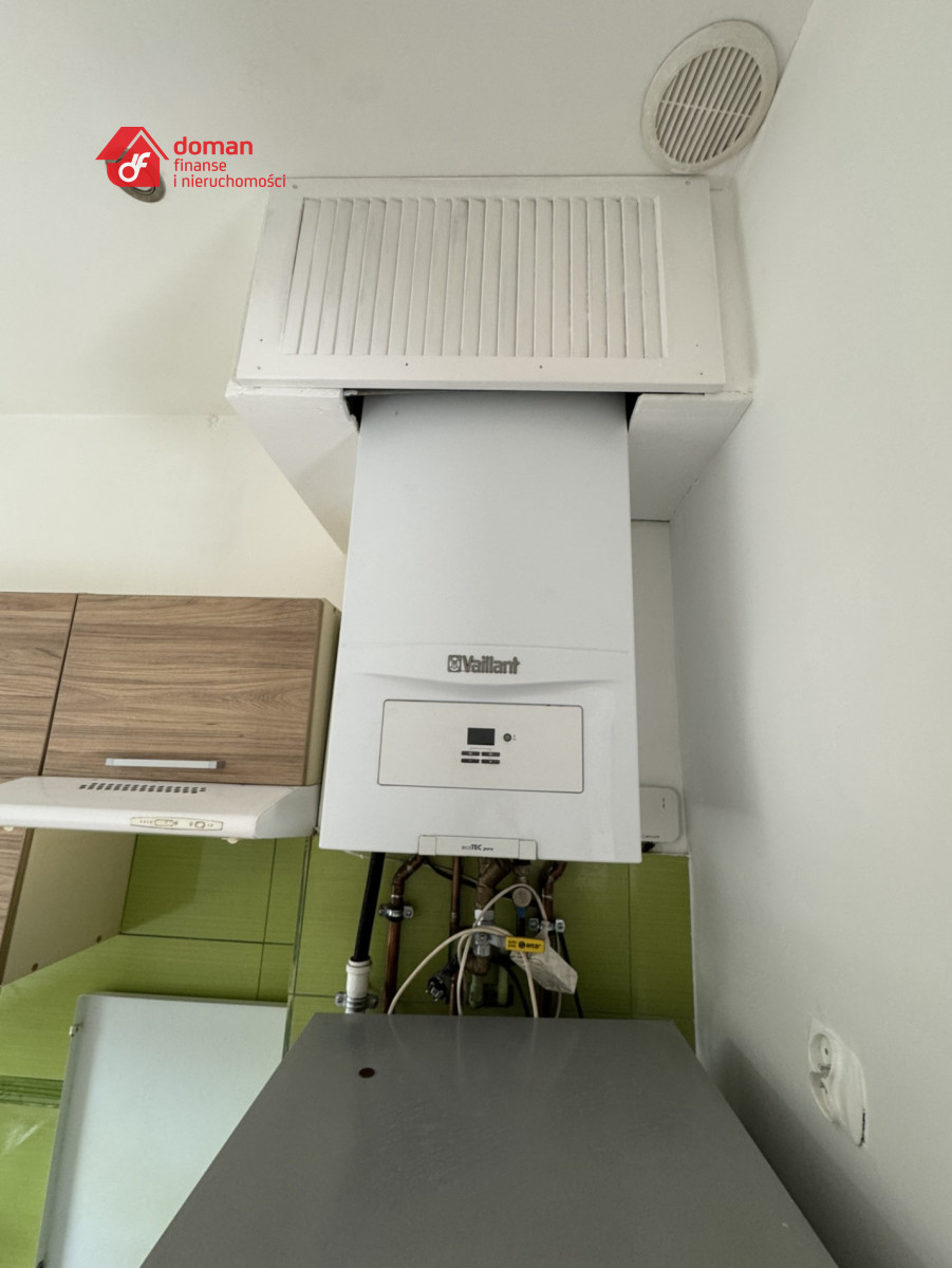 Ogrzewanie gazowe (nowoczesny piec dwufunkcyjny) + zachowany piec kaflowy jako element dekoracyjny lub alternatywne źródło ciepła.