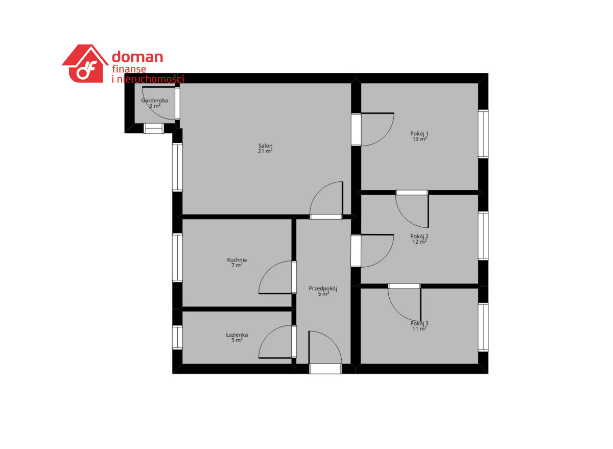 Potencjał aranżacyjny: Możliwość wyodrębnienia wszystkich pokoi jako niezależnych poprzez proste prace budowlane (wybicie dodatkowych drzwi z przedpokoju).